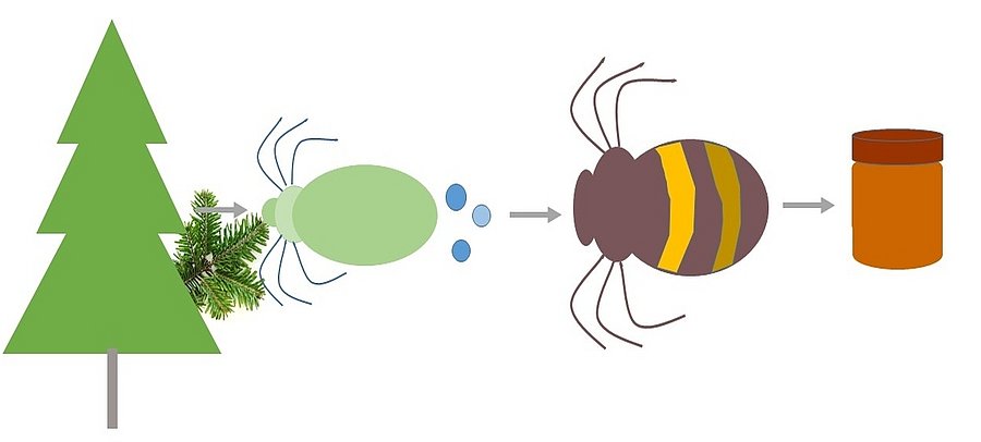Mit einer mikroskopischen Pollenanalyse kann man die botanische Herkunft von Blütenhonig bestimmen. Das gilt allerdings nicht für Honigtauhonig, auch bekannt als Wald-, Fichten und Tannenhonig. Honigtauhonige gehören aufgrund ihres würzigen, malzigen Geschmacks zu den in Deutschland am stärksten nachgefragten Honigsorten. Honigtau bezeichnet die Ausscheidungen von an Pflanzen saugenden Insekten und ist stark zuckerhaltig. Bienen nutzen Honigtau, um daraus Honig zu produzieren. Lindenhonig ist in diesem Zusammenhang eine Besonderheit, da er sowohl Blütenhonig als auch Honigtauhonig sein kann, bzw. eine Mischung aus beidem.